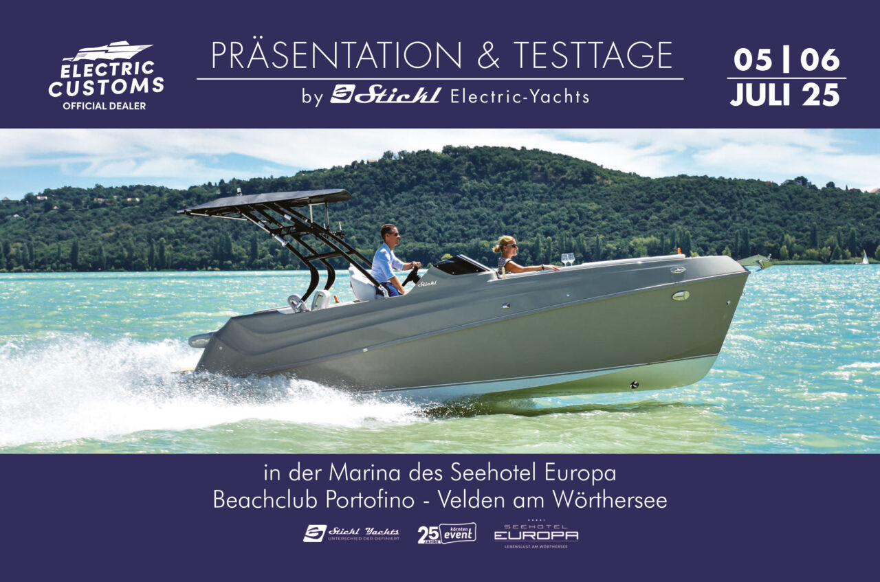 Electric Customs Präsentation & Testtage by Stickl Electric-Yachts – 05./06.07 in der Marina des Seehotel Europa – Velden am Wörthersee